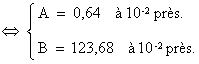 calculer la valeur de B , on utilise les coordonnées de G1 ou G2 (qui
